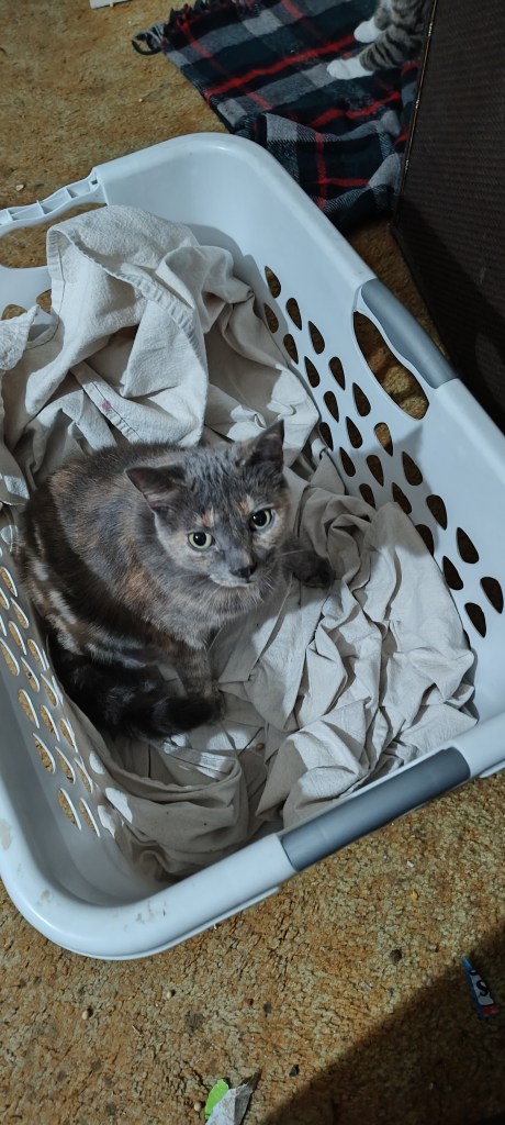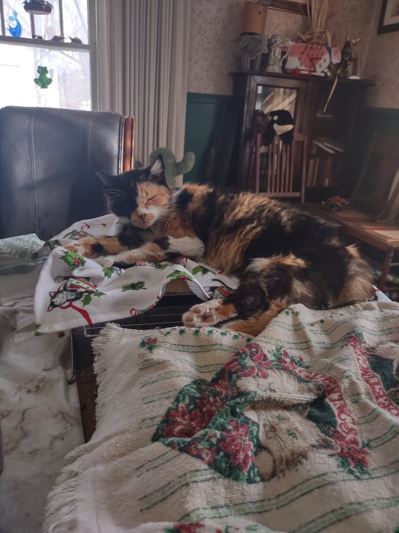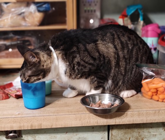 Gypsy: Yeah. Since she started coming to breakfast, Mom has been opening three cans of food in the morning. We’re going to be back to two cans split between us.