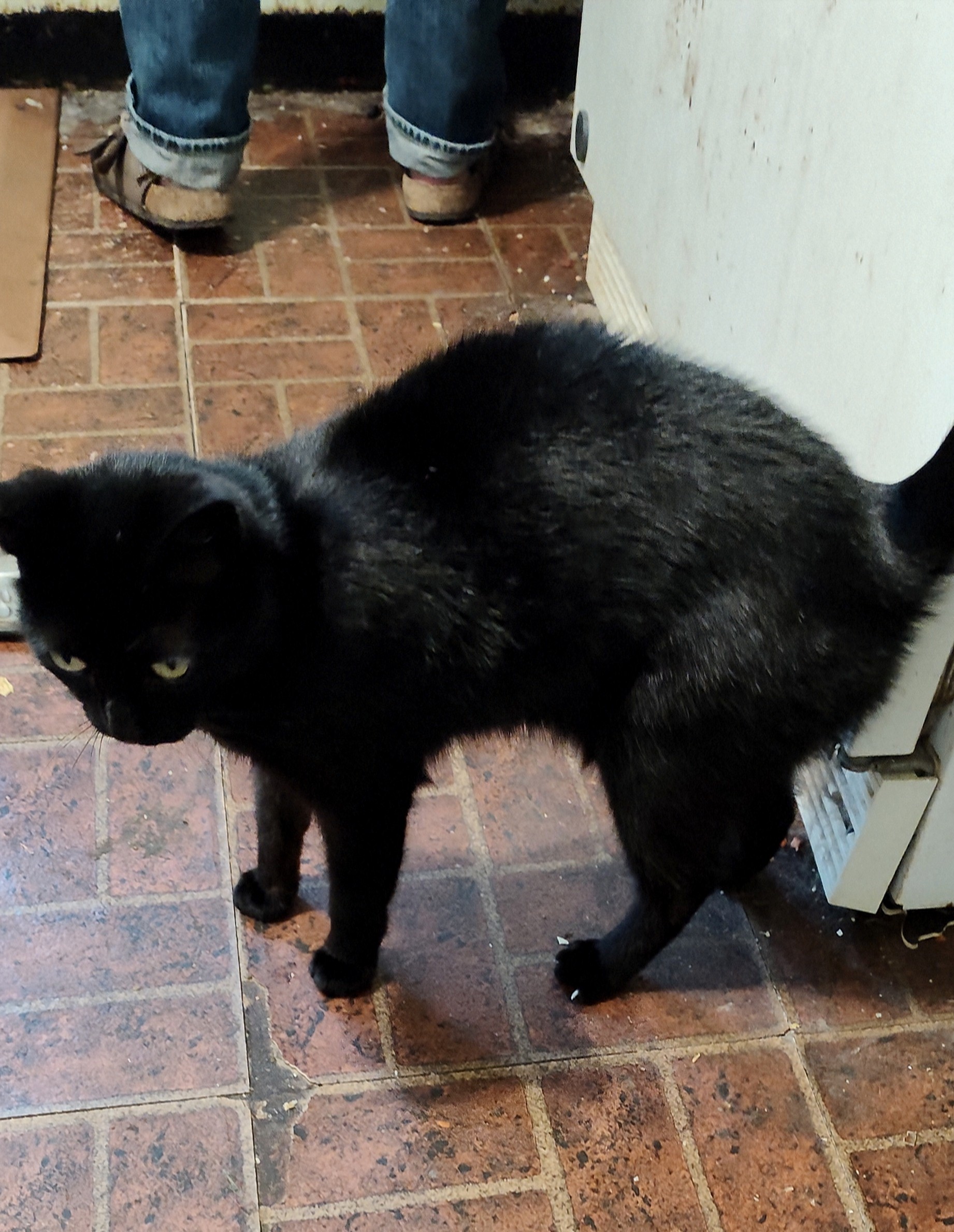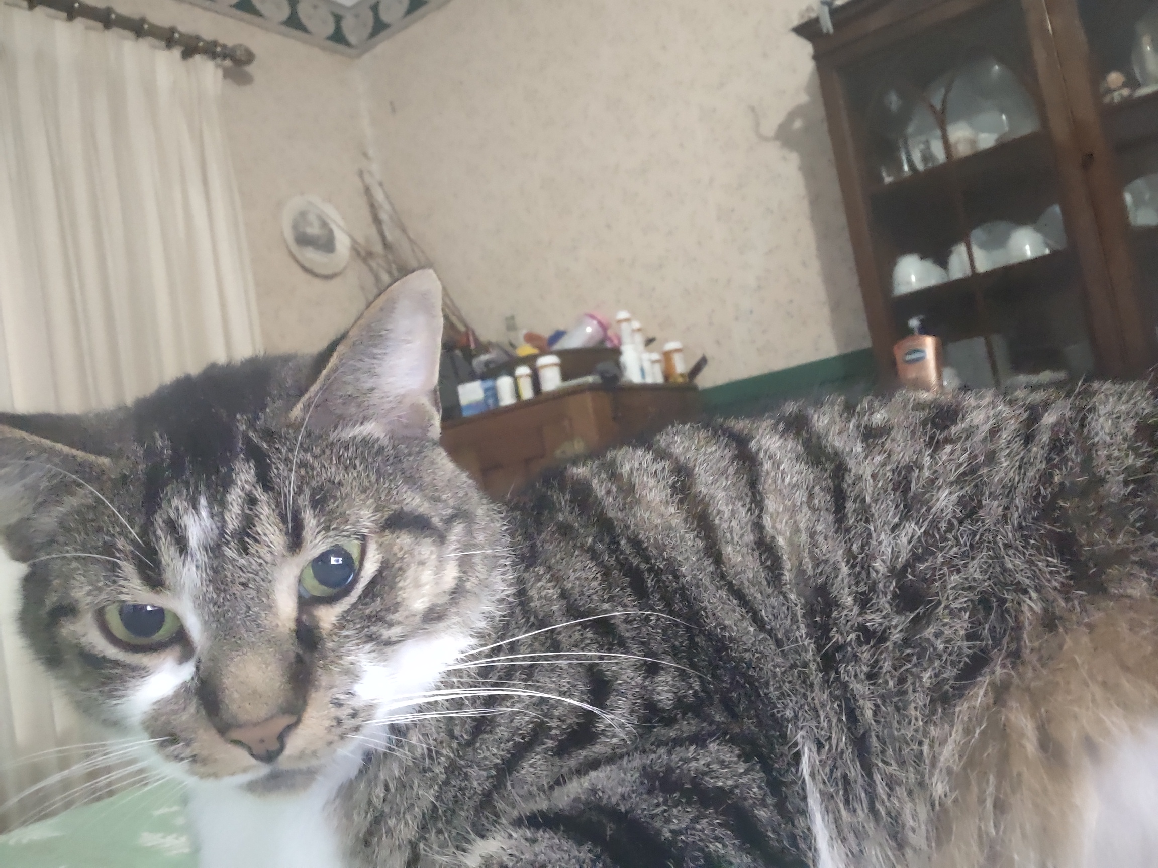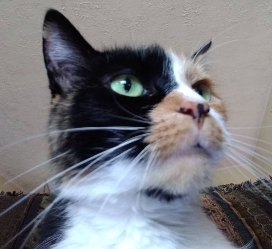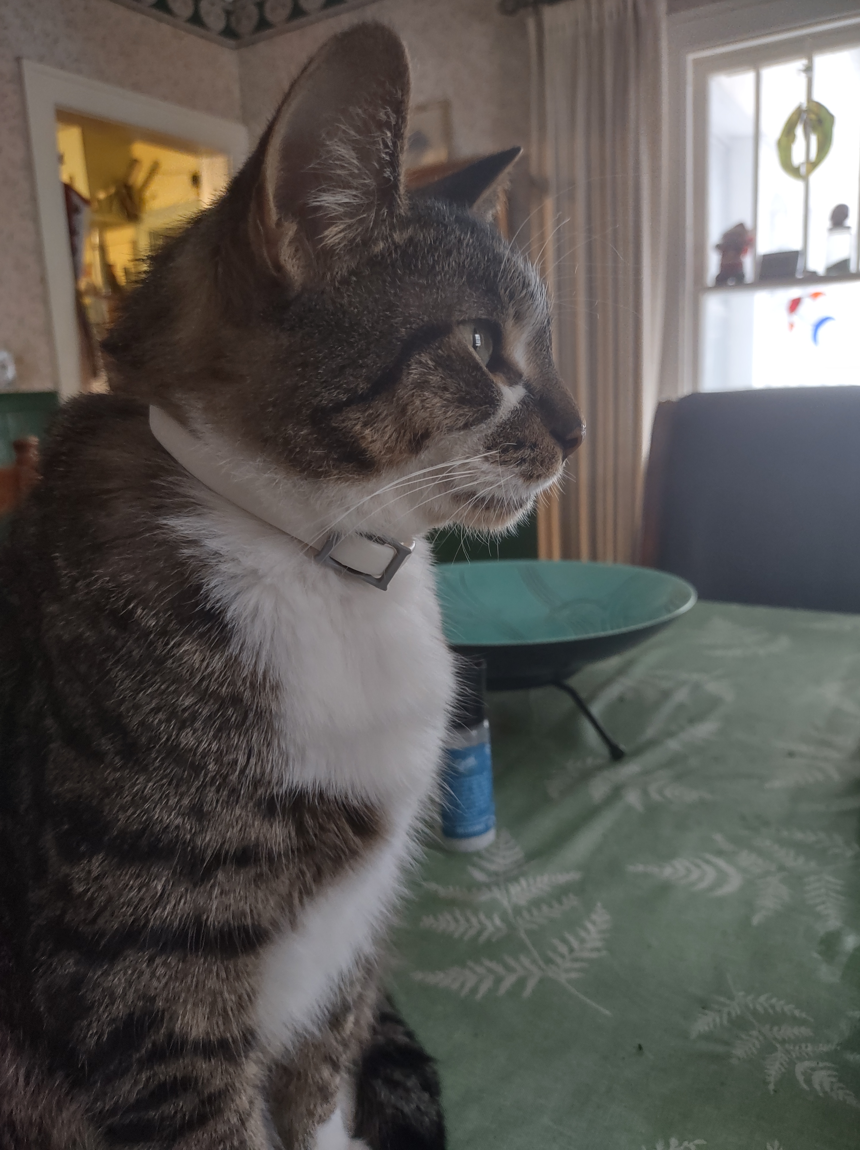 Snoops: And she was finally getting socialized to being in a multi-cat household. She was even beginning to join us for breakfast.