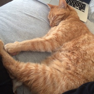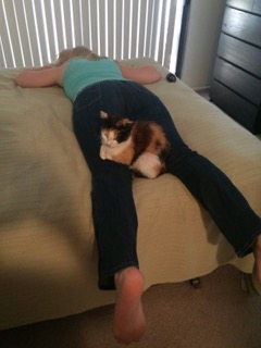 Chloe: I think I speak for both of us when I say, when she’s at home, on our couch and it’s just us. (except it’s annoying when she’s tapping away on that board of hers. I always let her know it’s time to stop. She should be sleeping, like any sane cat.)