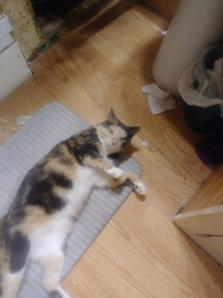 It’s Angel. He’s gotten a lot of really cool stuff to sit on and in. Like this dresser. I just hope they don’t cover it with junk. The new kid seems to have a LOT of stuff.