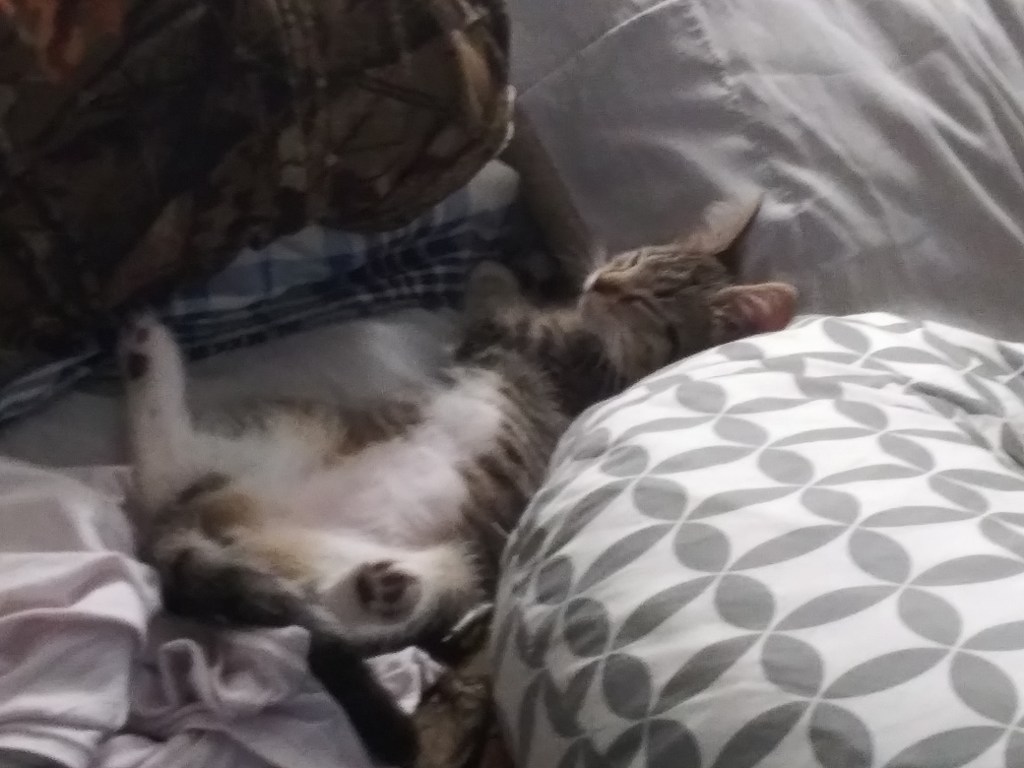 Hello. Thunder here. My siblings have chosen me to be spokescat. I’m the new kitten here. I am a little upset. I was the baby before the little human arrived. And now he’s the center of attention.