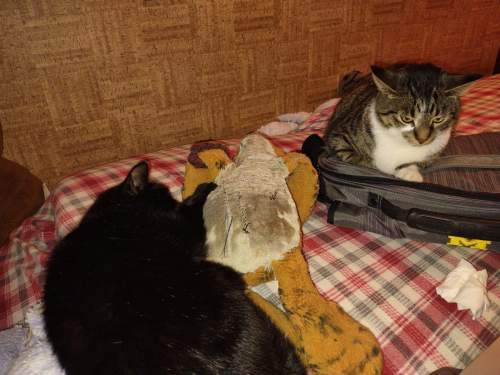 Hi, everybody! Sgt Stripes here. Guess what! I have two new friends, one human and one feline. I was really lonely last week because my main human went to a place called Italy for 10 days and left me all alone (except for Mom and the new human/cats). I thought I had been deserted