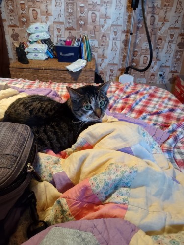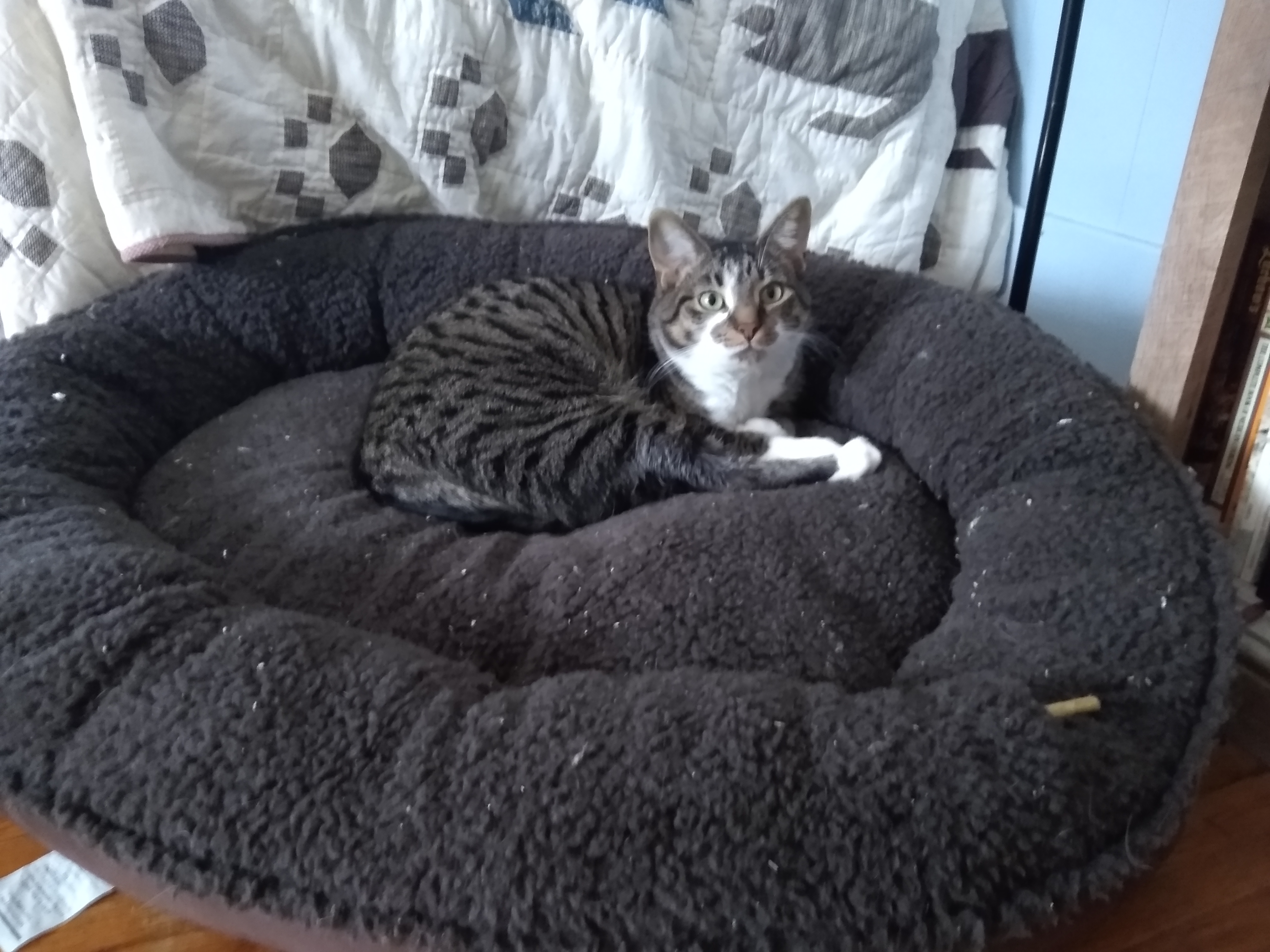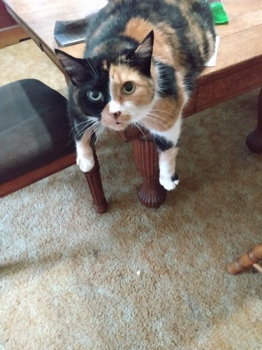 She seems kinda shy. We sat together for a little bit one day. The next day, I sniffed her again, and she seemed to get a little offended. She went under the bed. I guess I’m going to have to keep trying to charm her.