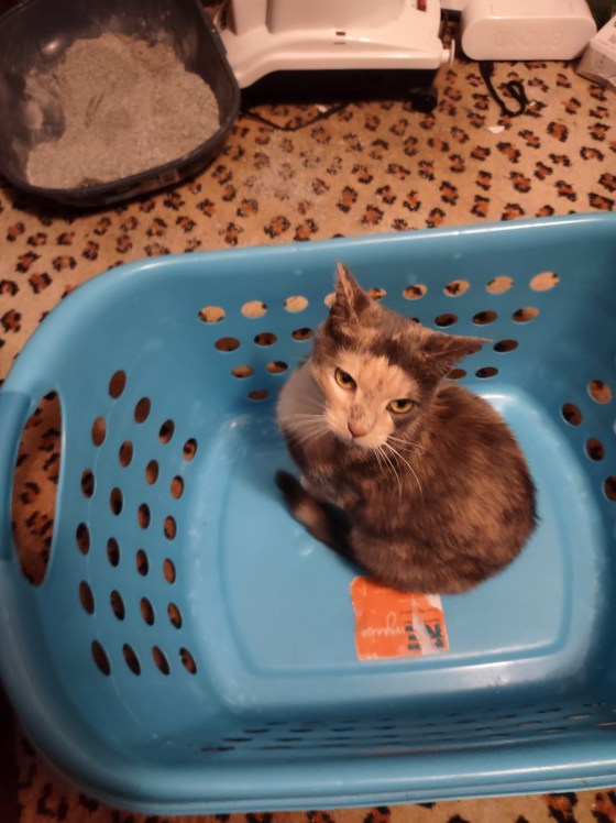 Hello. I’d like to introduce myself. My name is Gypsy Katt. I go by Gypsy, although Mom has called me Gypsy Rose a few times. I moved here with my other human Mom and the two little humans. Originally, I was staying in the sun room with my sister Angel. But Angel kept eating all of the food and I lost a lot of weight.