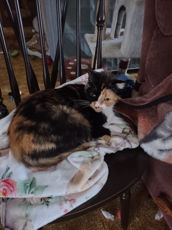 I really like it here. There are four adult beds plus two toddler beds and only three cats. Nobody tries to eat my food. Mom (the one who lived here before) lets me sleep with her at night. Sgt Stripes and I share the kibble bowl and fountain. Onyx kinda keeps to herself. This is the best place I’ve ever been.