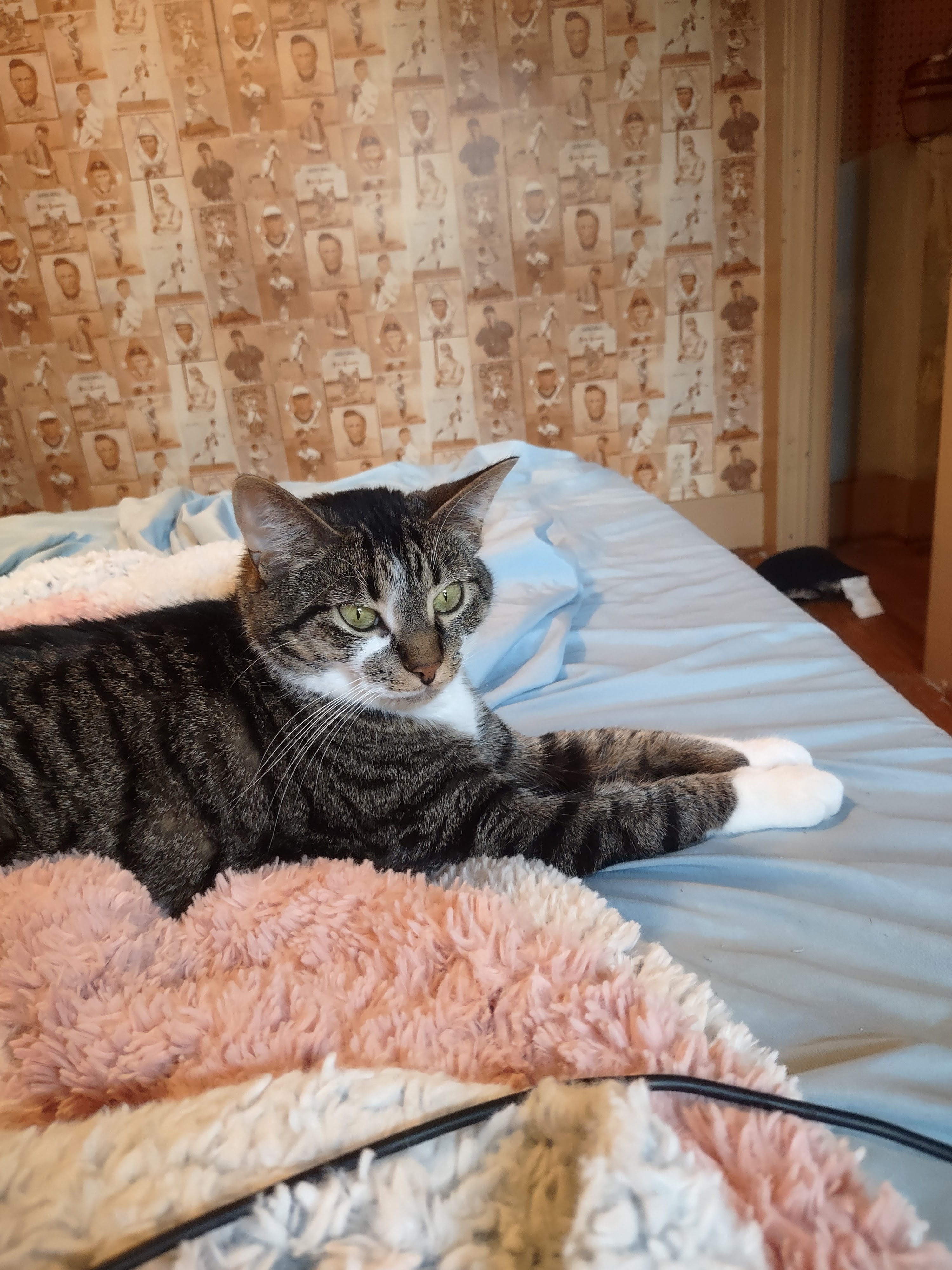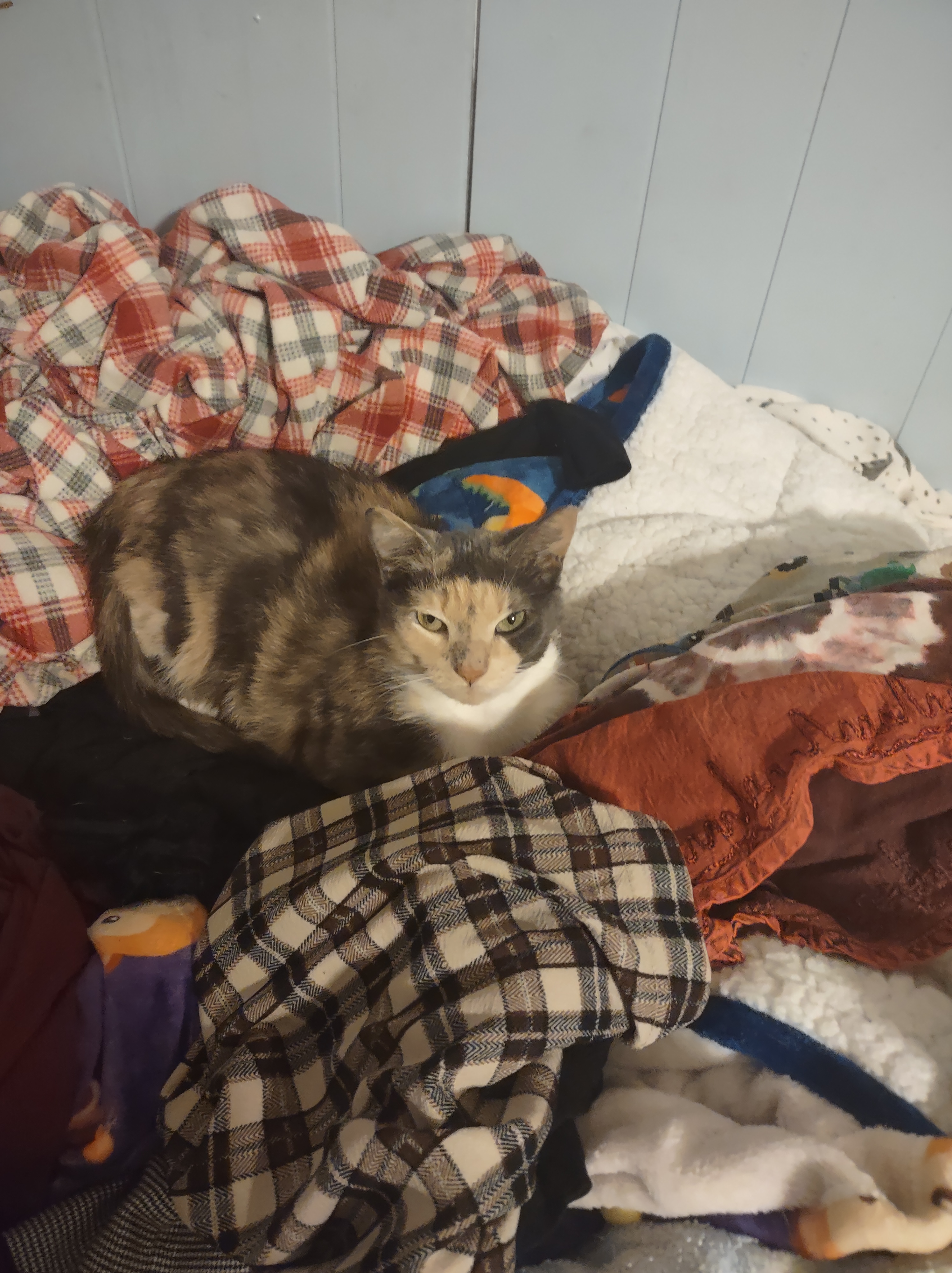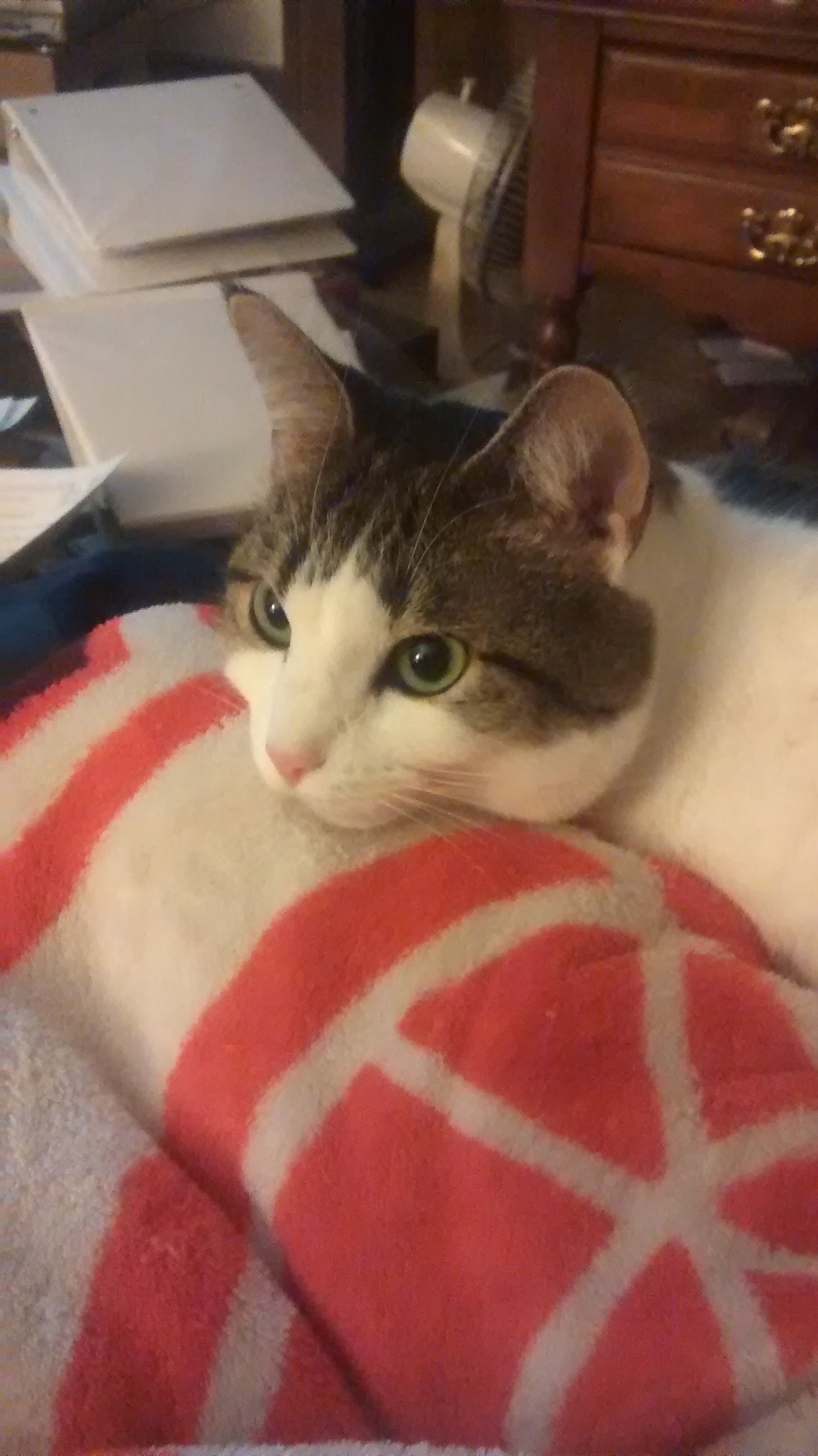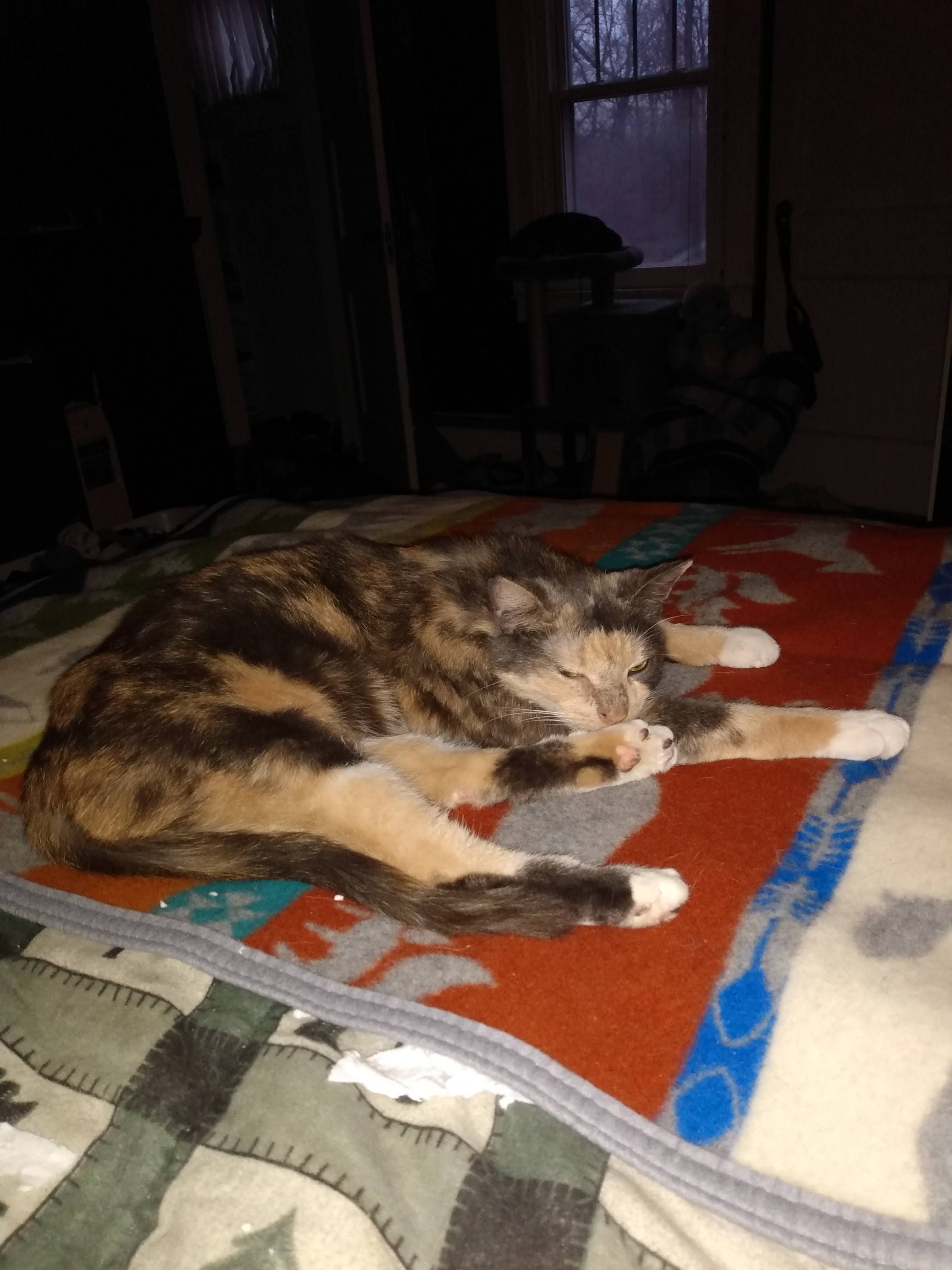 I really like it here. There are four adult beds plus two toddler beds and only three cats. Nobody tries to eat my food. Mom (the one who lived here before) lets me sleep with her at night. Sgt Stripes and I share the kibble bowl and fountain. Onyx kinda keeps to herself. This is the best place I’ve ever been.