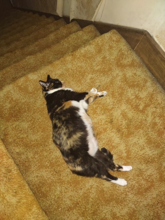 Angel: I’ve really wanted to get out for a while, but I was a little nervous. Every time Sgt Stripes tries to come downstairs, Snoops hisses at him and chases him away.