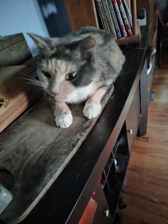 Onyx: I think I like it better having full run of the house. Besides, Gypsy is still upstairs. She’s kind of grumpy.