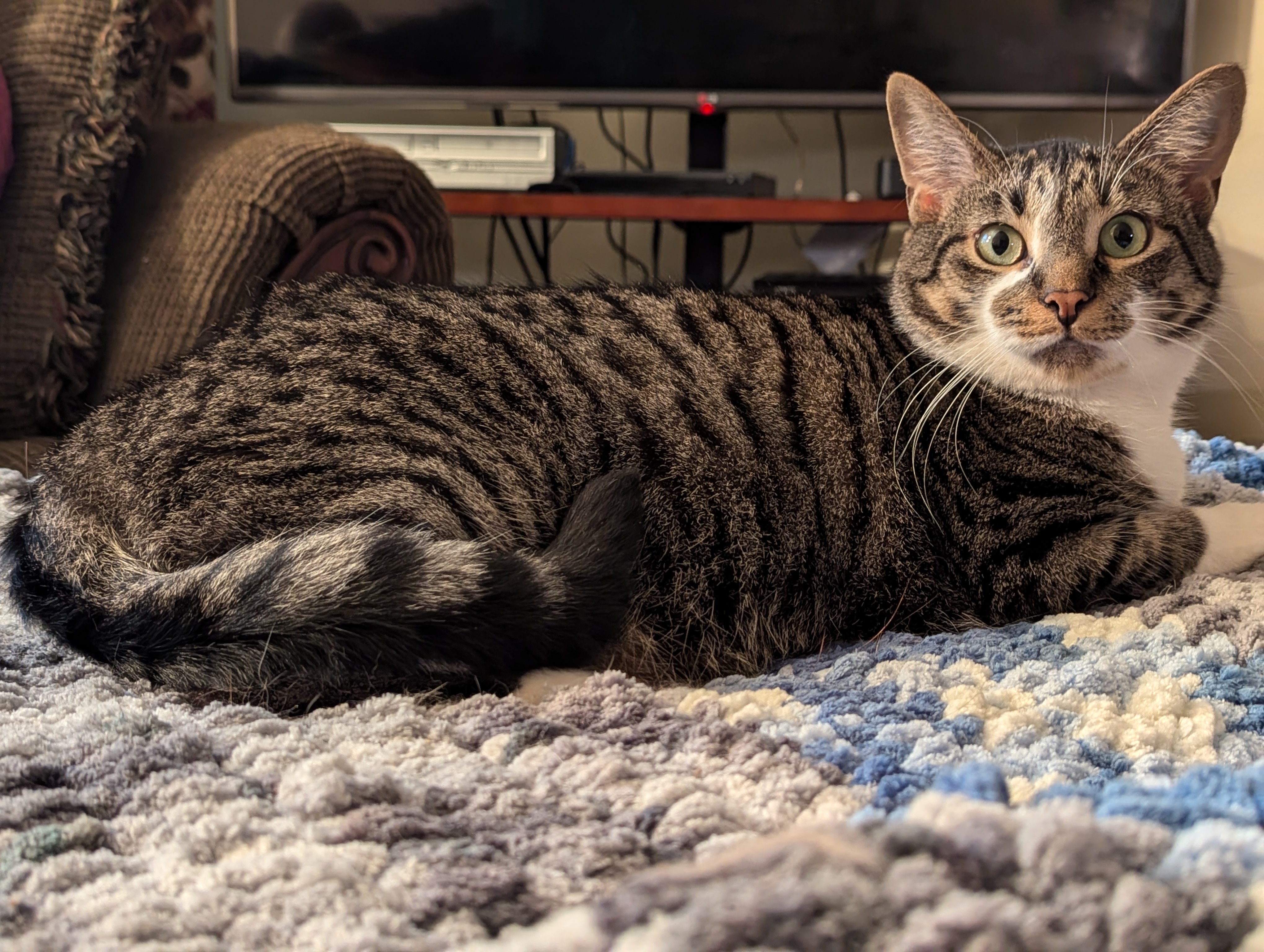 Hi Everyone. Snoops here. Mom says I should change the title of this post. It’s actually about five cats trying to share space. There wasn’t really any fight. Just a lot of irritation.n