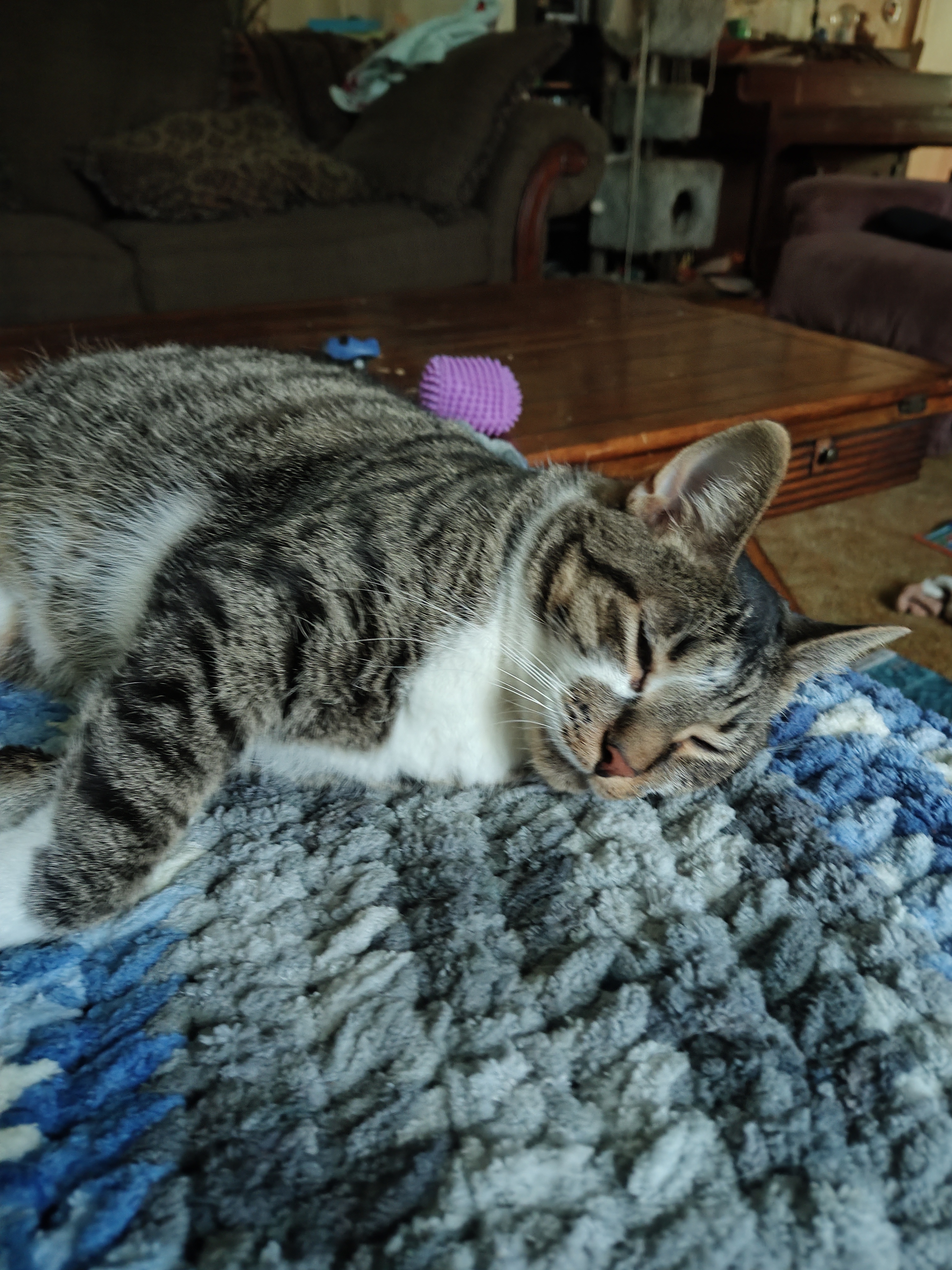 Yeah, my cats only sleep with me in the winter. Oh, well. Something is better than nothing, I guess. Way to go on the extra treat sneaking, guys.