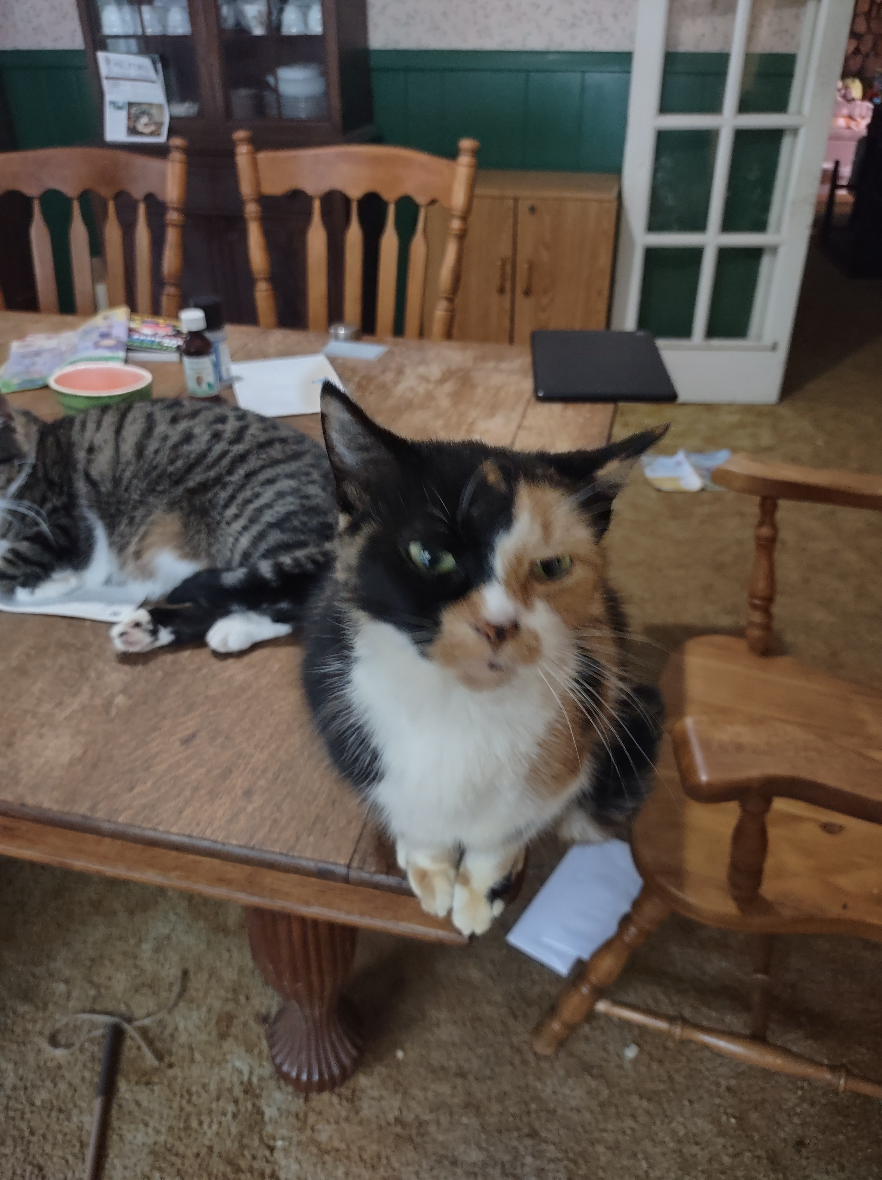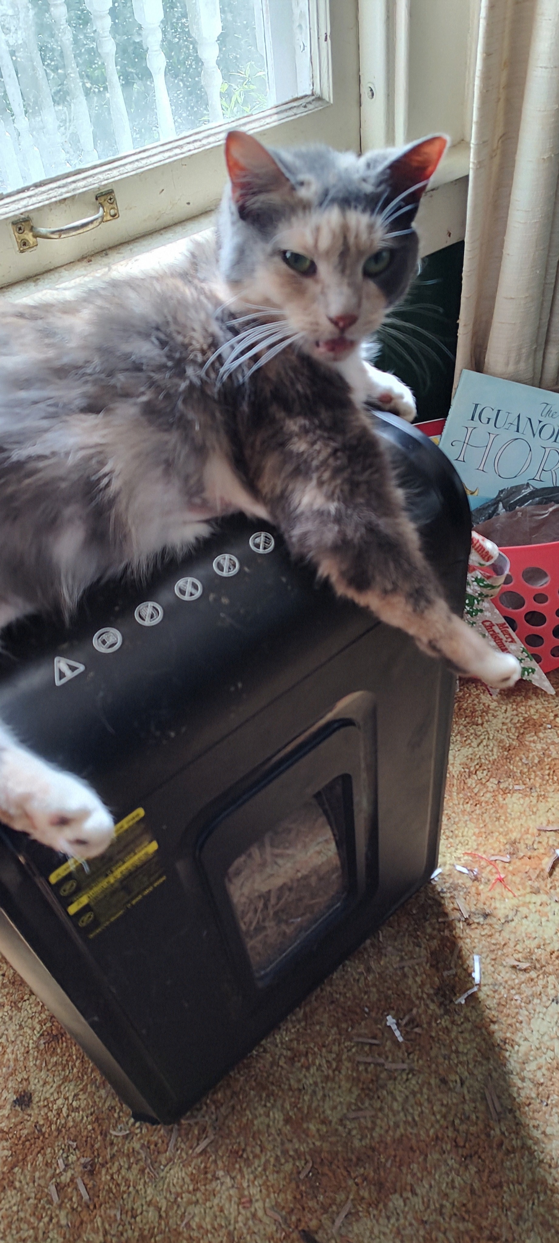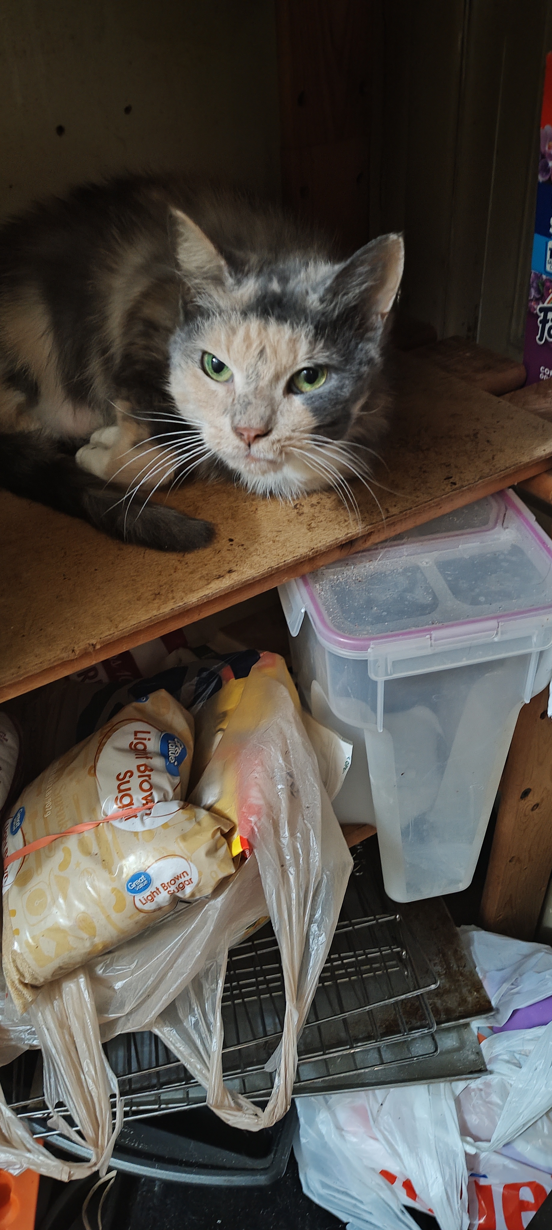 Gypsy: I don’t really like lots of people. I stayed in my new favorite spot – a shelf in the pantry.
