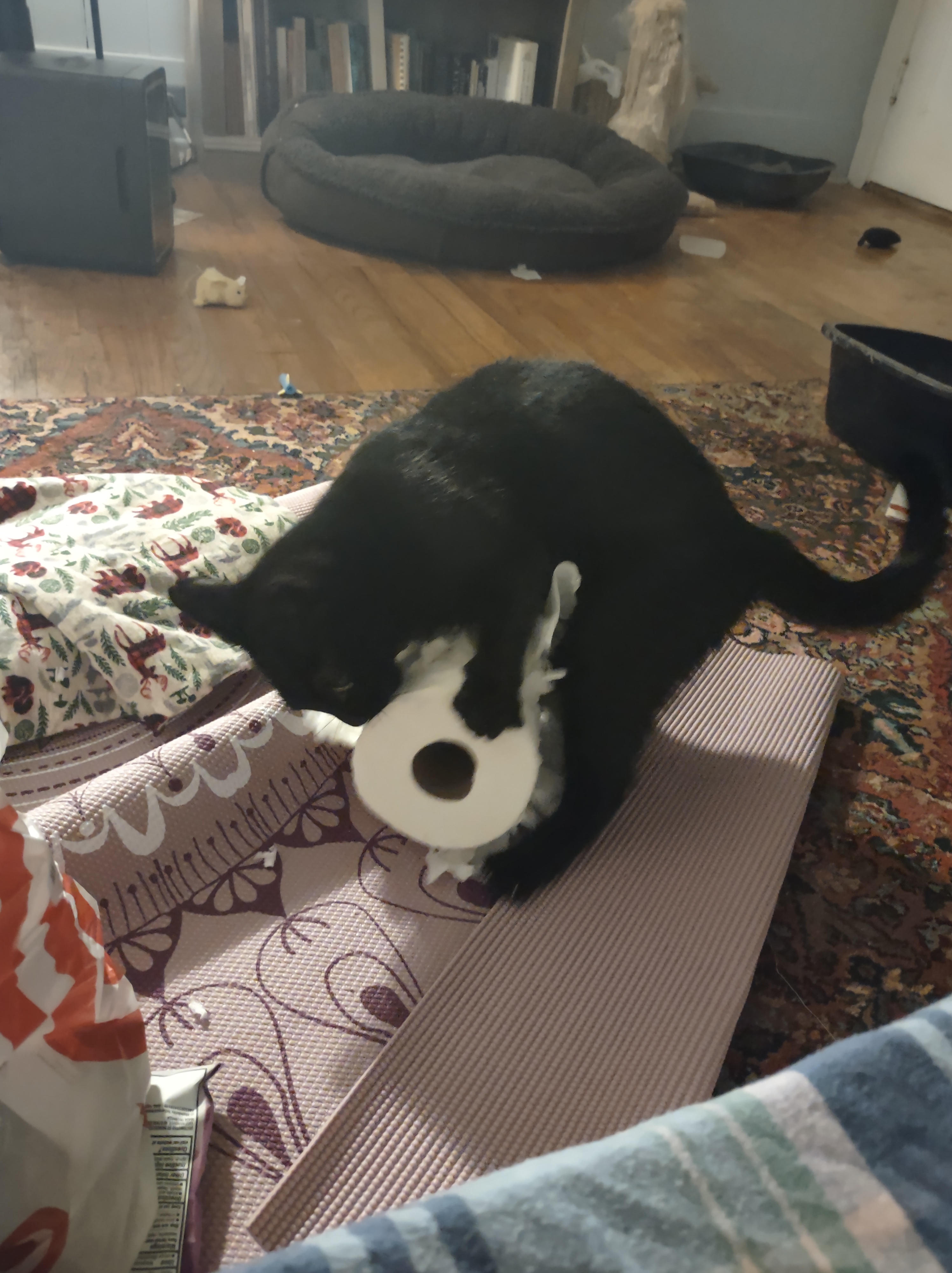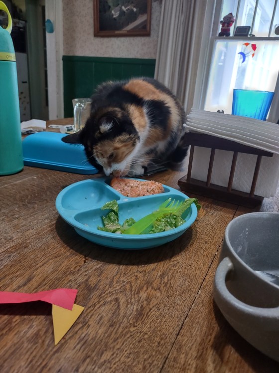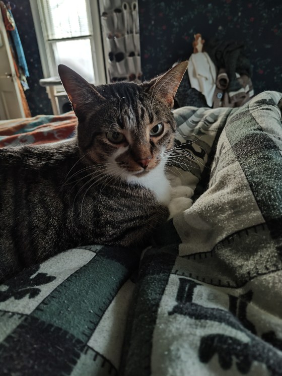 Gypsy’s been really good about staying up there. It’s the first time she’s actually had a specific human to care for, and she seems to be happy with the situation. On the other hand, Sgt Stripes and Onyx have been coming down pretty regularly. And they are not good at keeping to themselves. Onyx is the smallest cat on the household, but hisses at all the rest of us cats every time she sees us. It’s rather annoying.