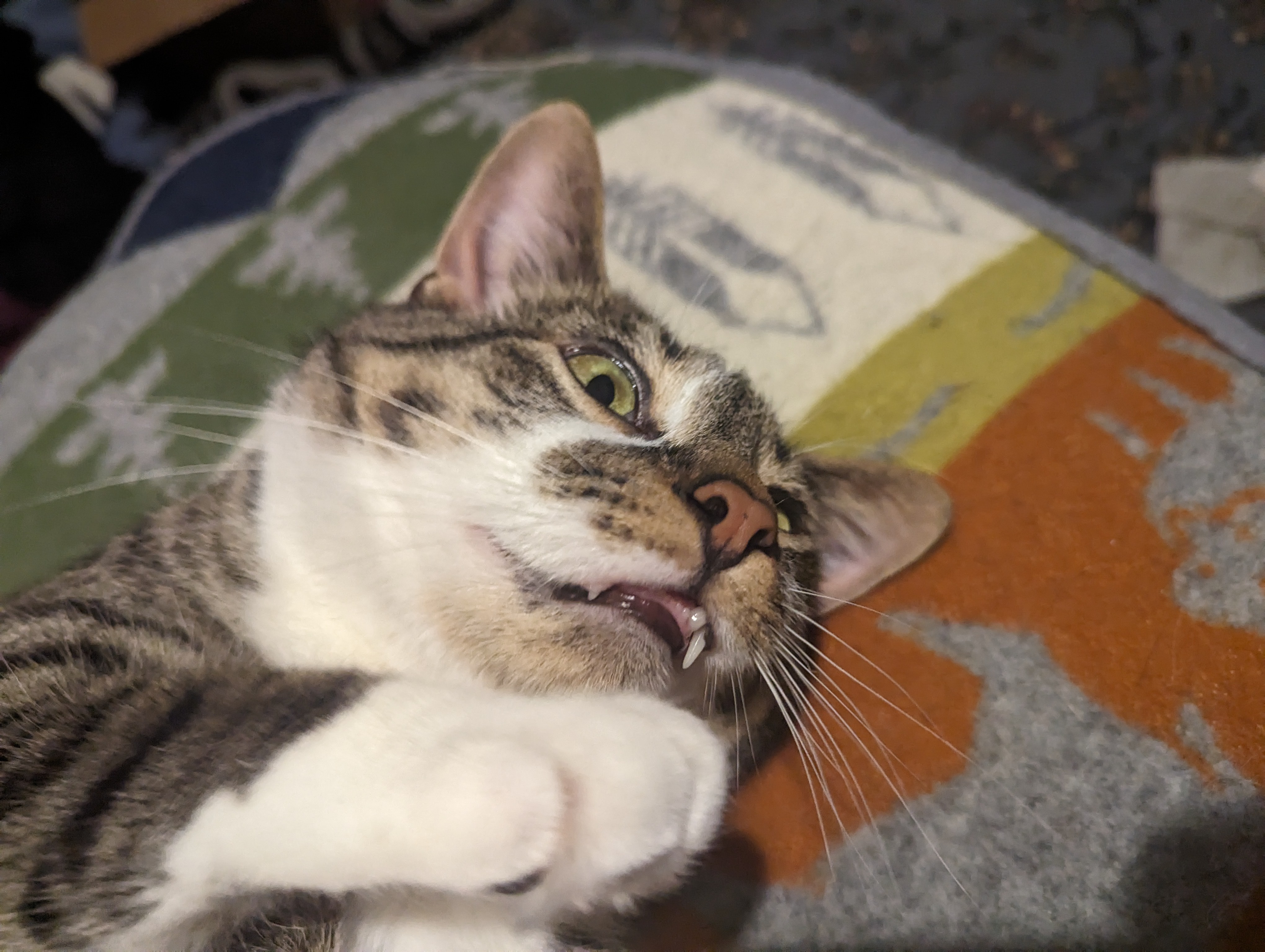 Said the kitty cat to her feline friend-