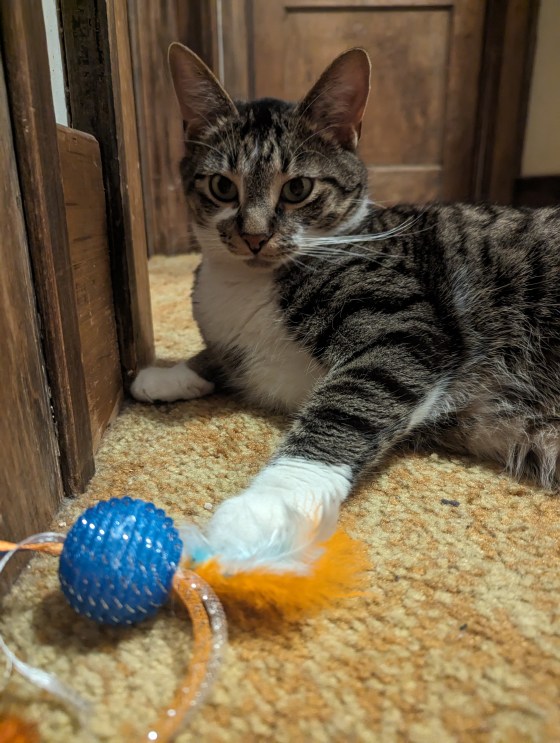 I just need a light to chase, and a litter box in a clean place.