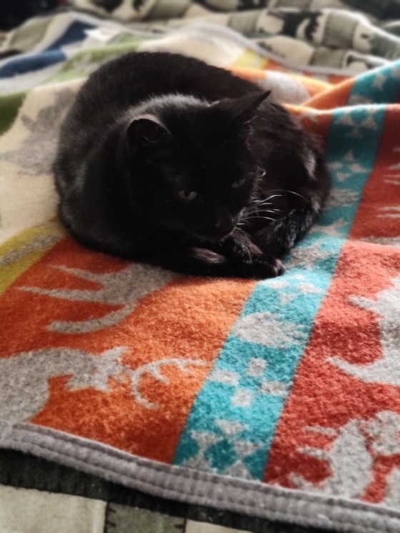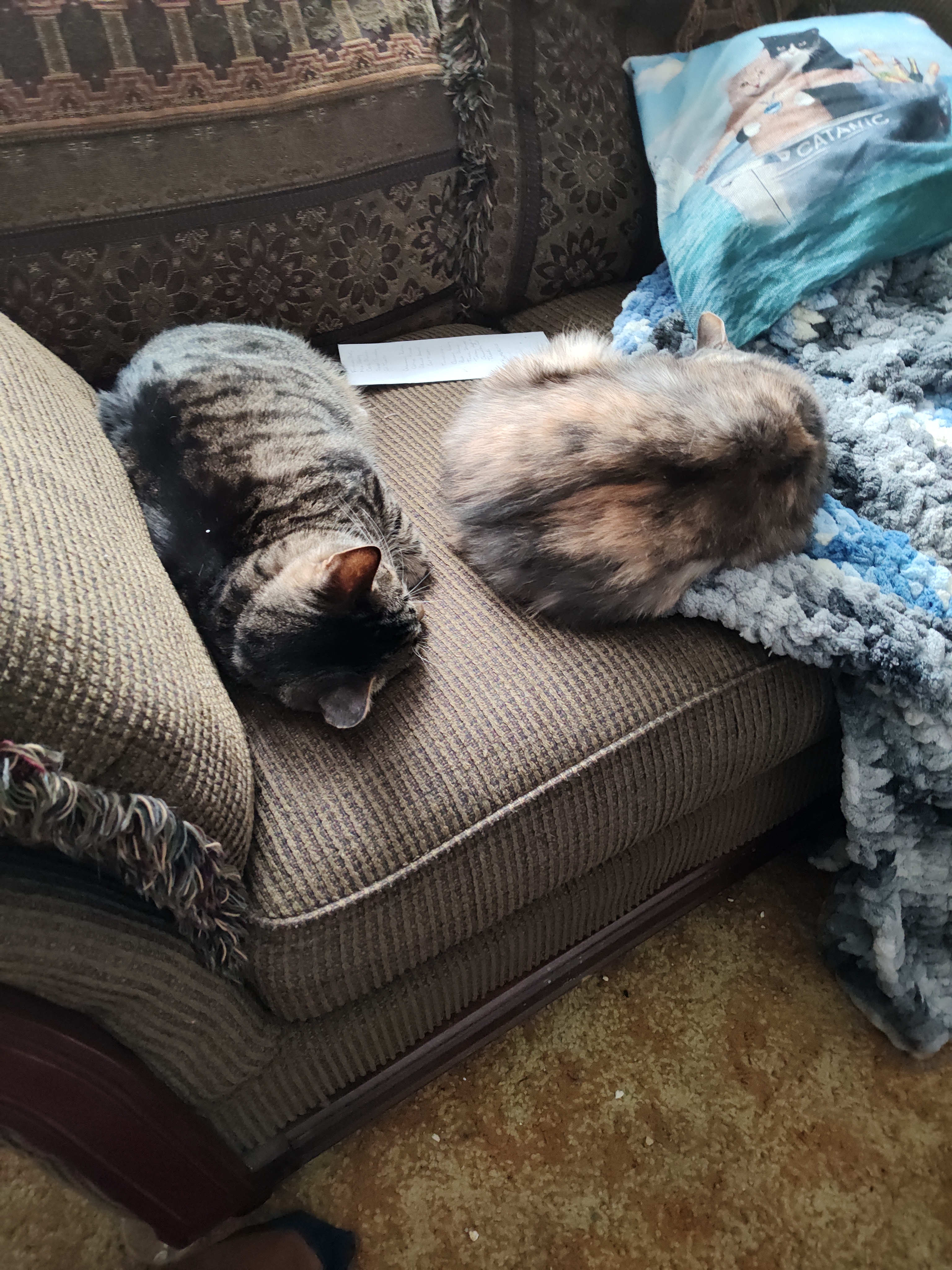 Angel: “It is. I could do so much more if she would just stay home! But our routine is pretty much, she gets home and has dinner. Then she reads to the little humans. I avoid the little humans, so I’m not around for that part. But then comes my favorite part of the night; the little humans go upstairs, and Blondie settles down on the couch!”