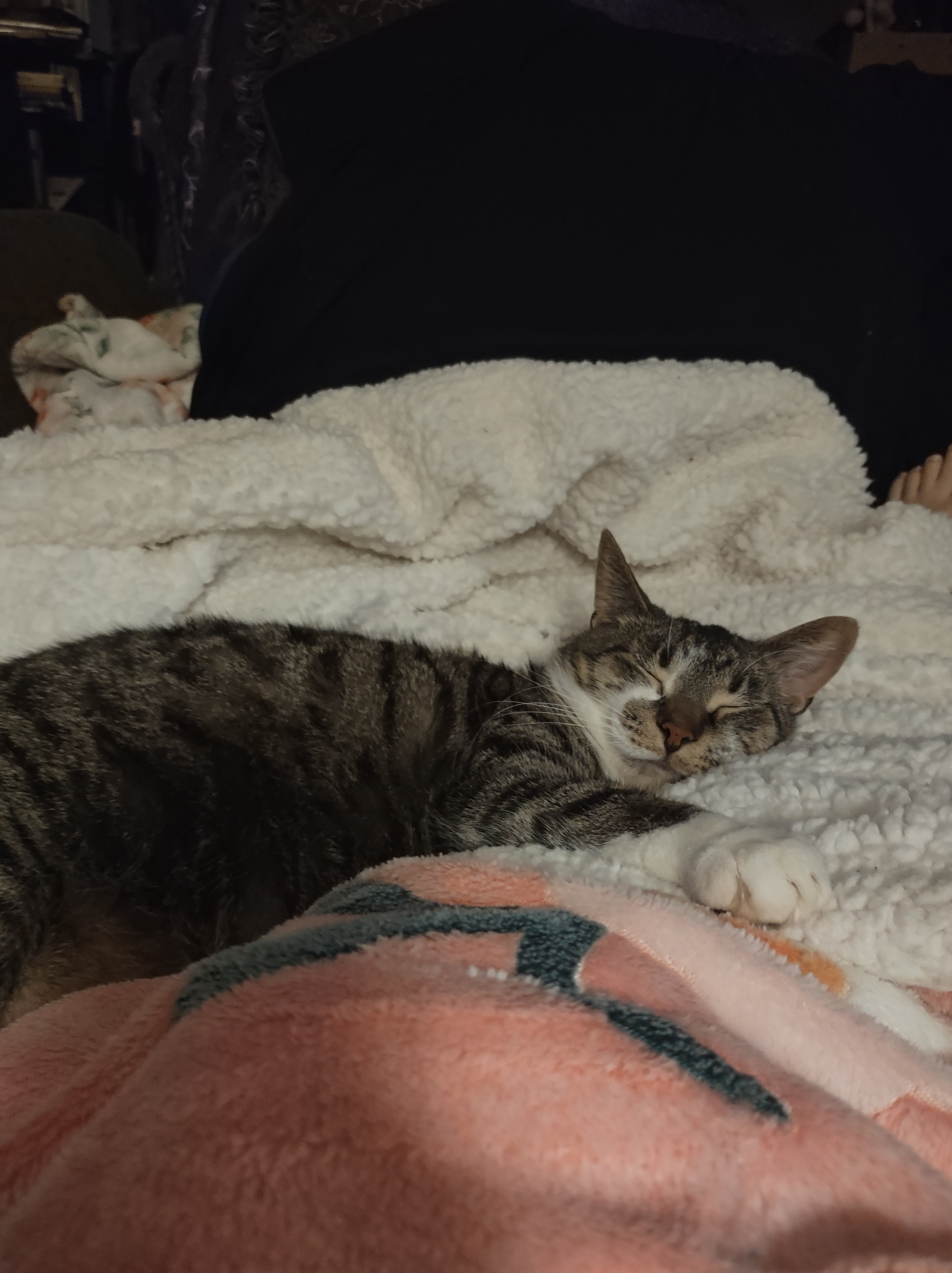 Angel: “Well, she’s sleeping down here currently, so I get to cuddle with her. I’ve never had a human to cuddle with. It’s really nice.”