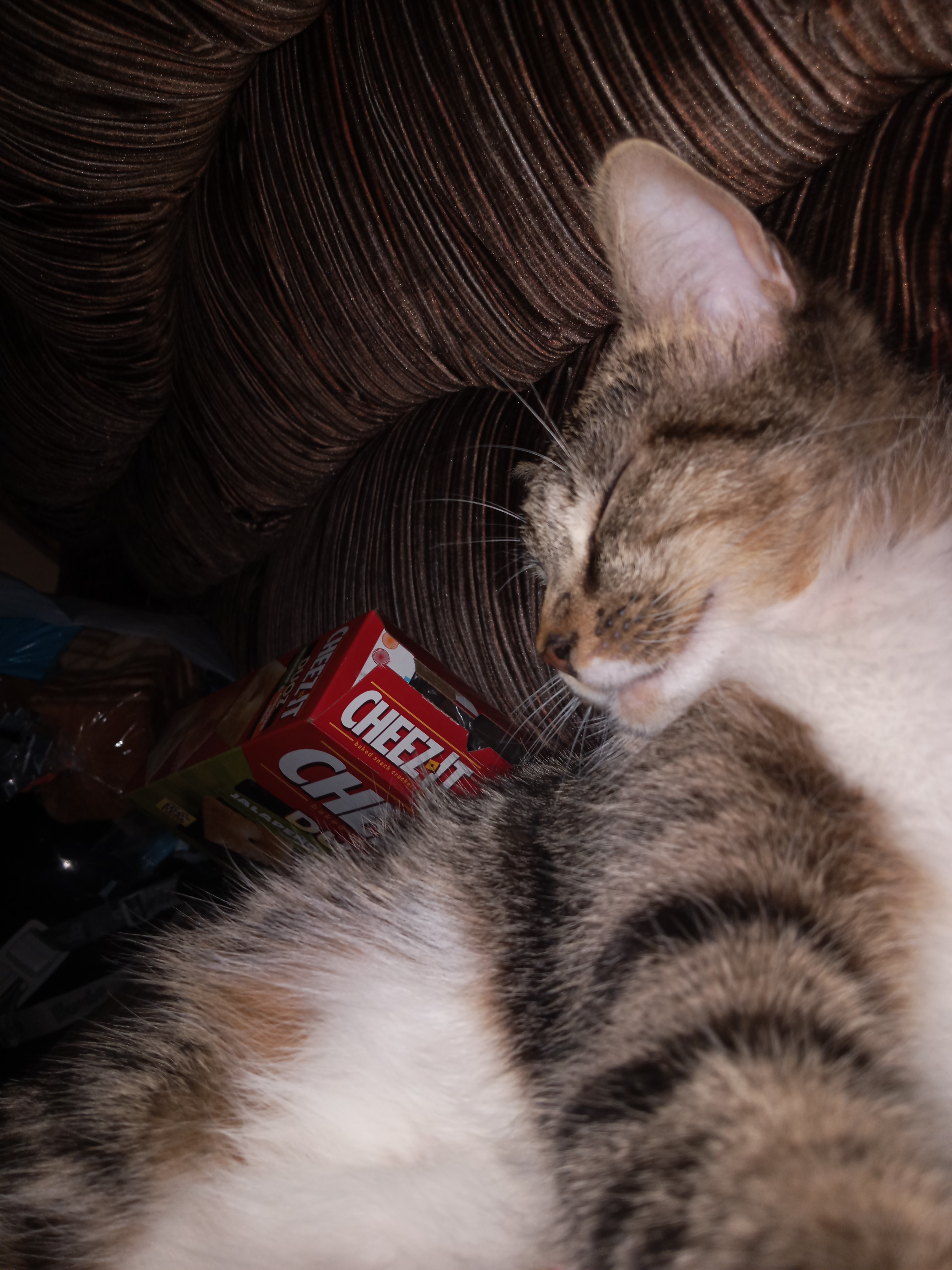 This is definitely another Angel treat! I was so disappointed when I was told my human kitten couldn’t tolerate cow’s milk, so we had to start buying oat milk. We buy the vanilla flavored milk, so I guess Angel finds it tolerable. Like dairy based milk, you don’t want to gouge yourself on this, as there are proteins in there that cats have a hard time with, and a lot of calcium. However, if you do find yourself lapping up a little oat milk, know you’re getting vitamins A, K, and D, as well as iron, fiber and riboflavin. Again, be warned of the calcium content in this drink, and enjoy sparingly.