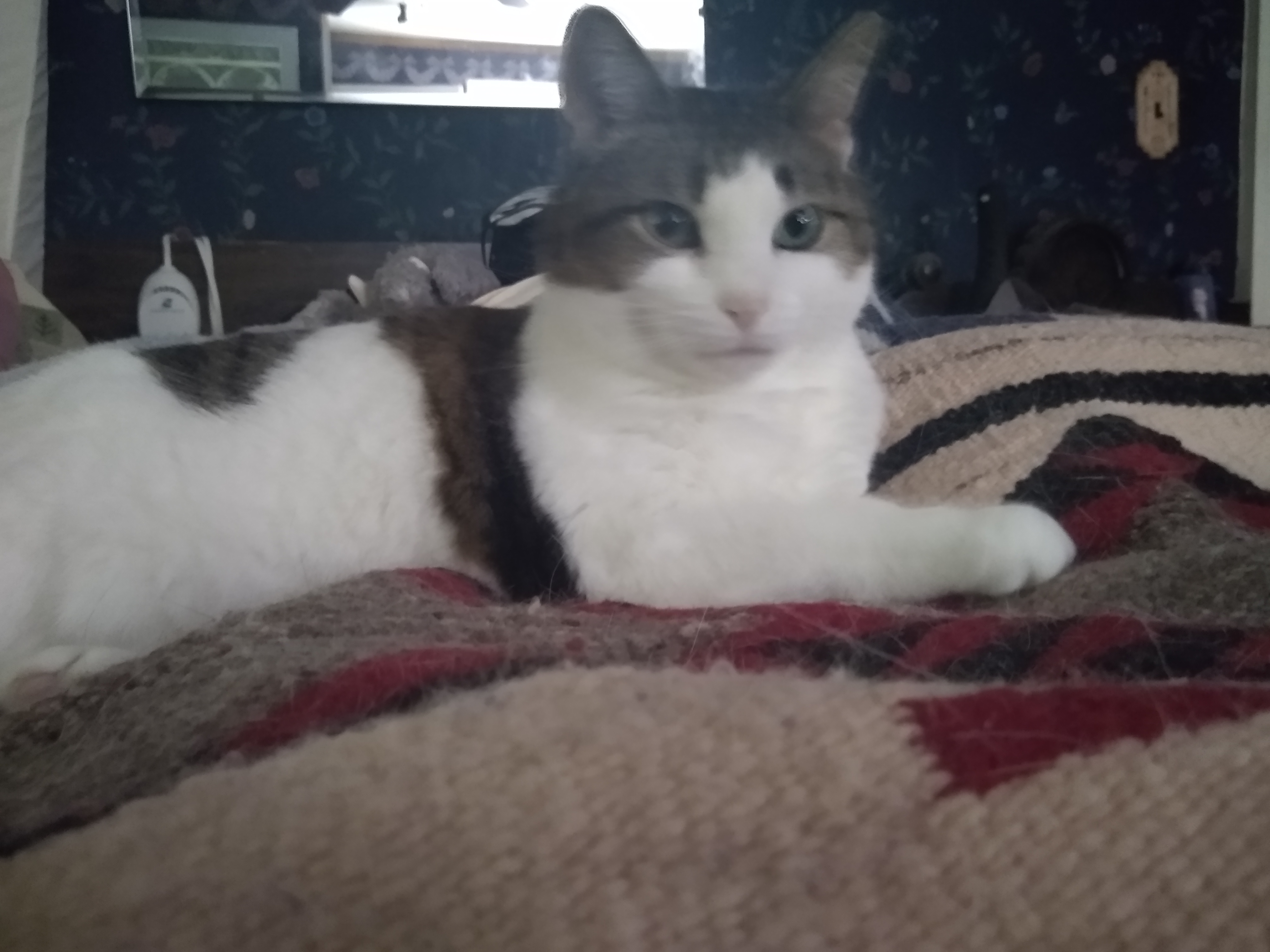 Snoops: She’s still here. And not ready to go anywhere soon. She comes out to say hello to our human sister, but isn’t getting near enough to any of the humans to be put in a carrier.