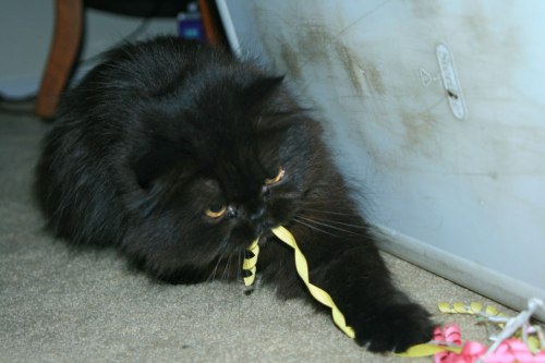 Welcome to Cat Forum. Snoops and Kommando Kitty here. We’re talking to Valentine this month. Not only is he a very good-looking Persian kitty, he’s funny. And if you go to his blog, Noir Kitty Mews, you will also see that he is very talented.