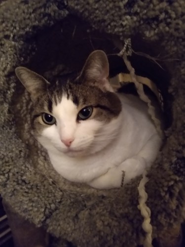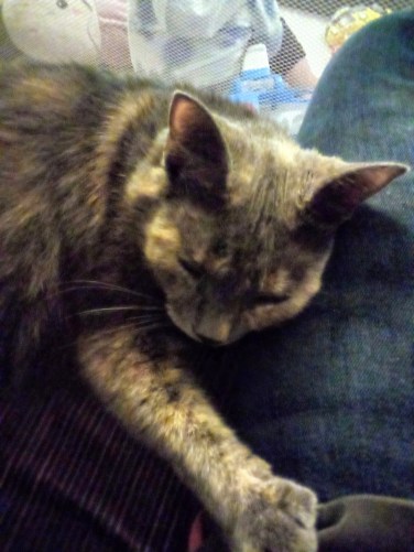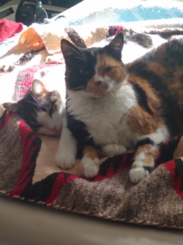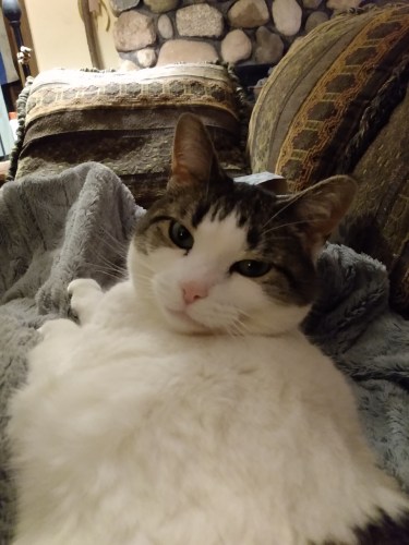 Angel: I was just getting used to laying in her lap when this happened. All of a sudden you guys took my spot, and I’ve been stuck laying on the ottoman.