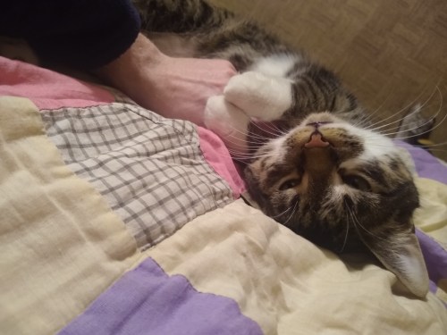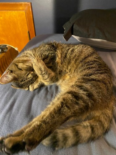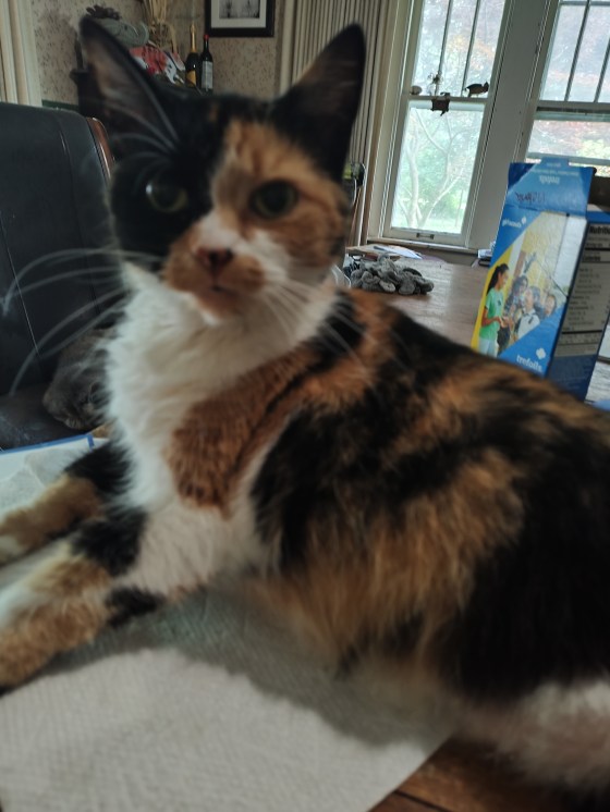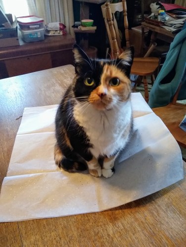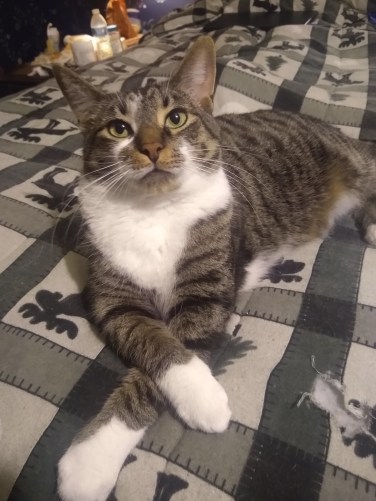 Angel: The male human is pretty attached to Sgt Stripes. And I just can’t get comfortable sitting with Human Mom, for some reason.