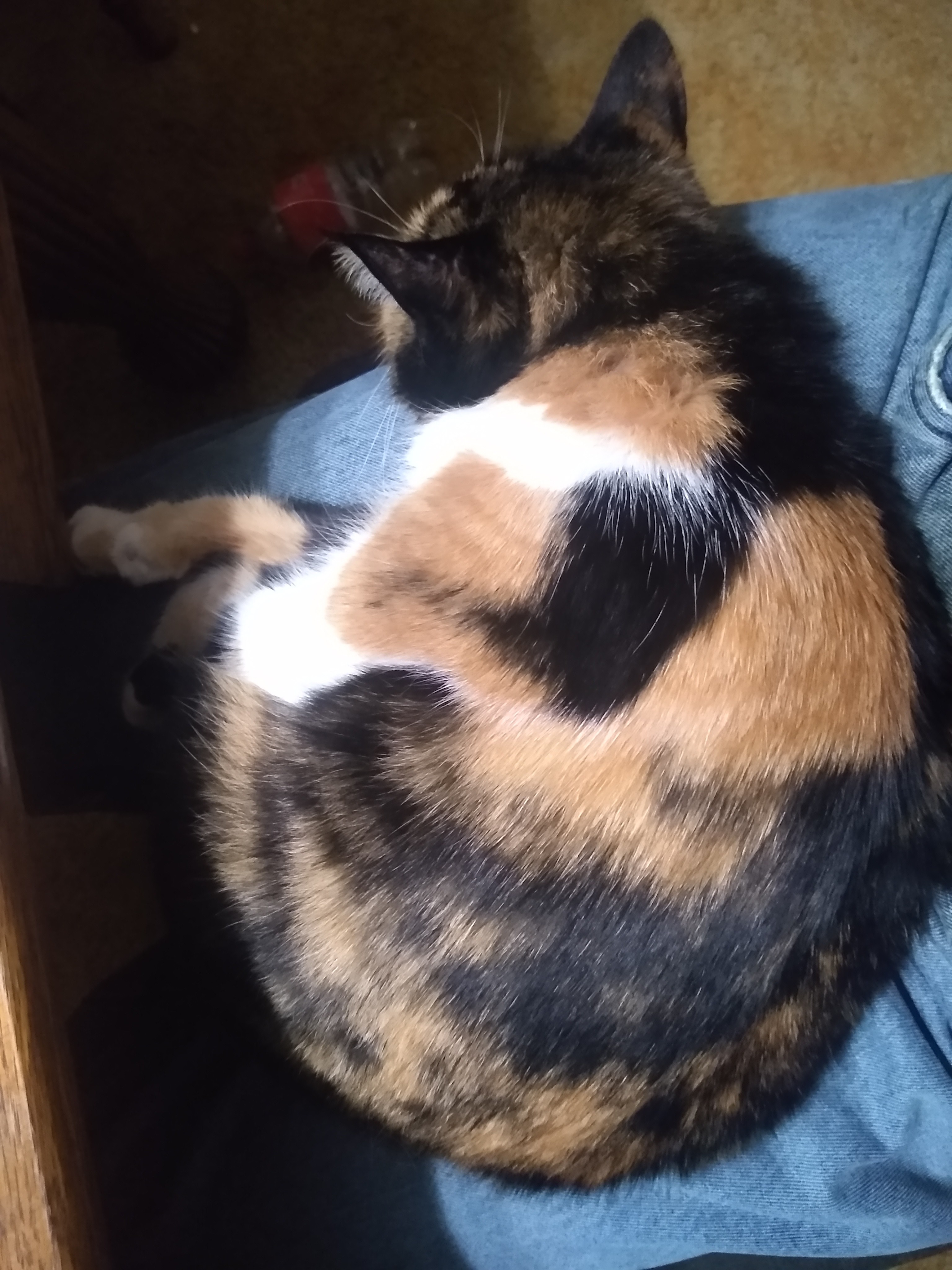 Angel: I was just getting used to laying in her lap when this happened. All of a sudden you guys took my spot, and I’ve been stuck laying on the ottoman.