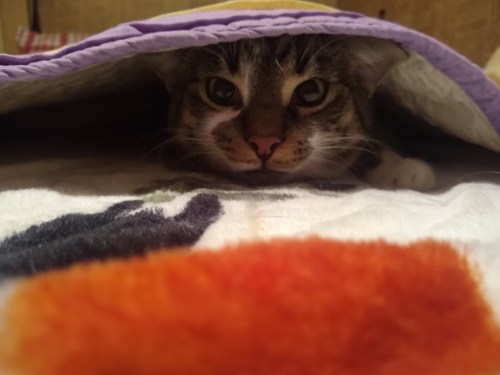 And I live snuggling! The place if full of blankets and quilts and soft spots to nap. It’s pretty much kitty nirvana around here.