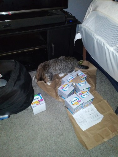 I will start by saying these diapers must be clean, and preferably in the package. Once they are used, diapers move to the top of the worst of baby list. However, in the package, diapers are soft but firm, making them good to lounge on. If you can get a clean one by itself, they make decent targets for hunting practice. I would not advise napping on the pack of diapers, as you’ll be disturbed far more frequently than acceptable. Human kittens go through too many diapers for the effort of curling up for a good nap.