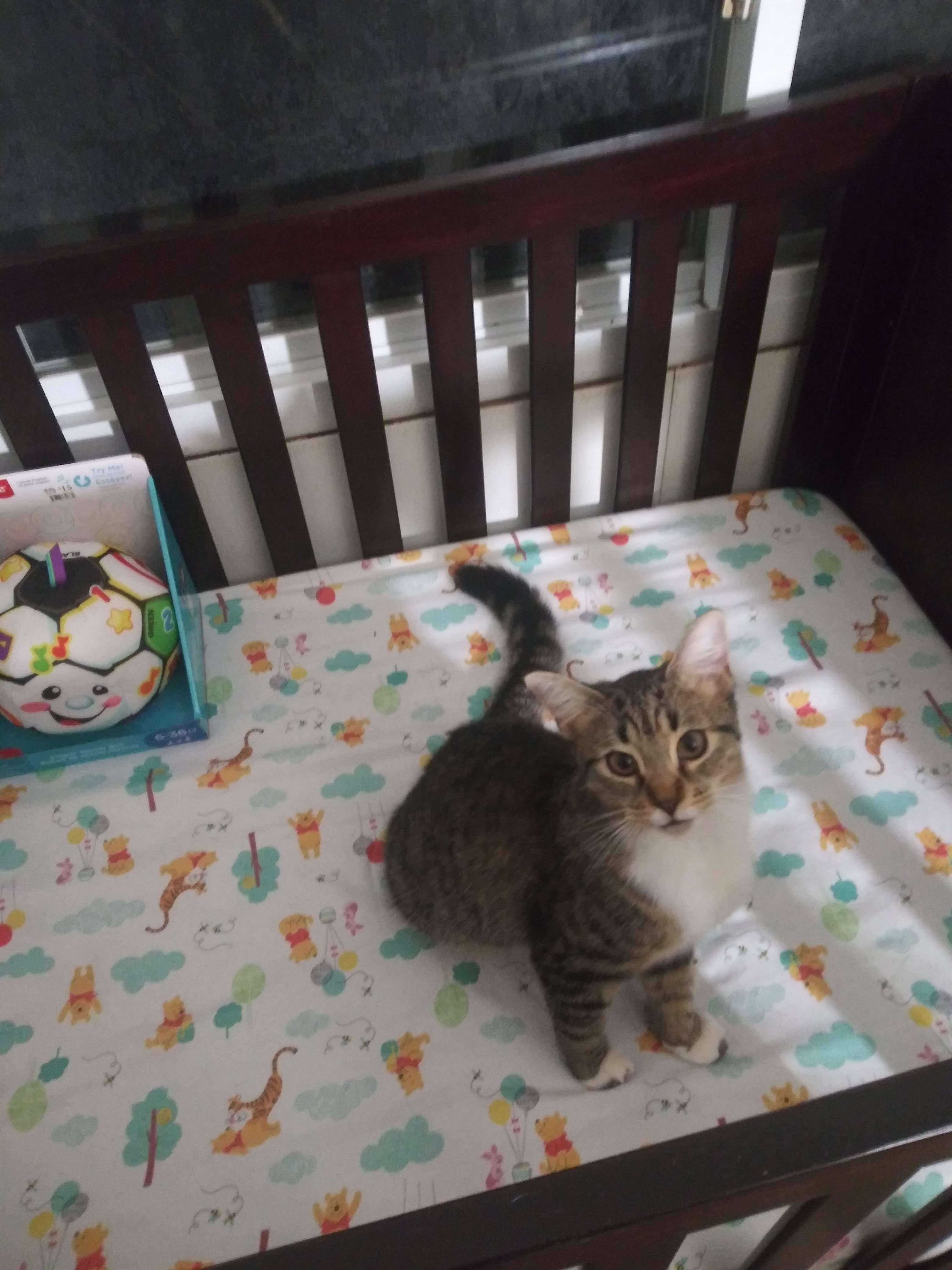This seems like an obvious choice. It’s a human kitten bed! These are preferable for bed time in the summer, as most human kittens don’t sleep with fluffy blankets until they’re older (feel free to switch back to your big human bed in the winter). Just make sure you get to the crib before the baby so you get the best spot.