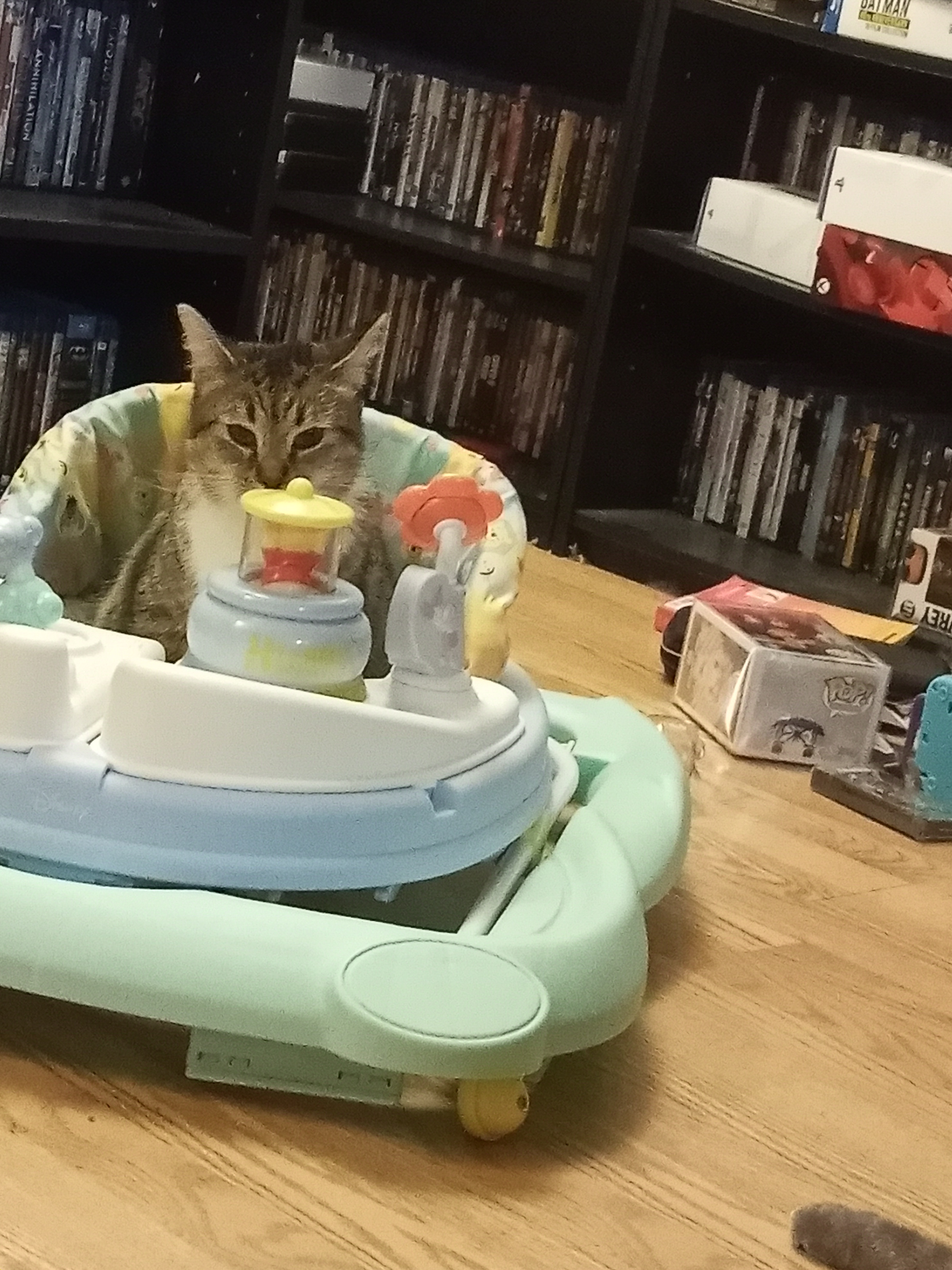 Hello everyone! It’s Thunder, and I have a special post for everyone today. About a year ago, Mom and Dad got us a human kitten (we did so good with him, they’re bringing us another one soon)! At first, we were really nervous, because we heard human kittens were loud, stinky, and messy- yuck! While all of these have proven to be true, he also proved to be more trainable than the adults (he already gives tummy rubs!) and he comes with some really cool things that cats everywhere can enjoy. So without further ado, here is the 2021 Best of Baby, as voted on by Angel, Onyx, and me!